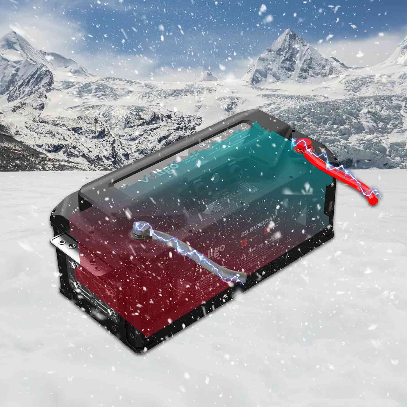 When temperatures drop below 0°C and your battery is connected to external power, VoltGo's heating capabilities kick in to keep your battery between 0°C and 45°C, to enable charging and discharge at temperatures as cold as -20°C (-4°F.)